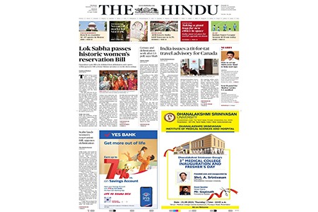 The Hindu was founded in 1878. It is the most respected Indian newspaper, known for its commitment to quality journalism. With an average issue readership of over 1.5 million, The Hindu newspaper covers a range of topics, including business, national and international news, politics, and culture. It is well-known for its credibility and integrity, The Hindu is trusted by millions of people for accurate and in-depth coverage, making it an ideal platform for business newspaper advertisements.